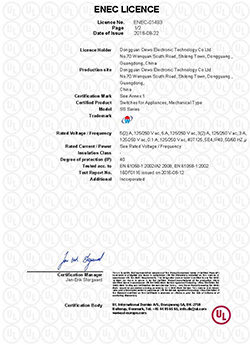 德傲微動開關(guān)CQC CB CE證書正式下發(fā)